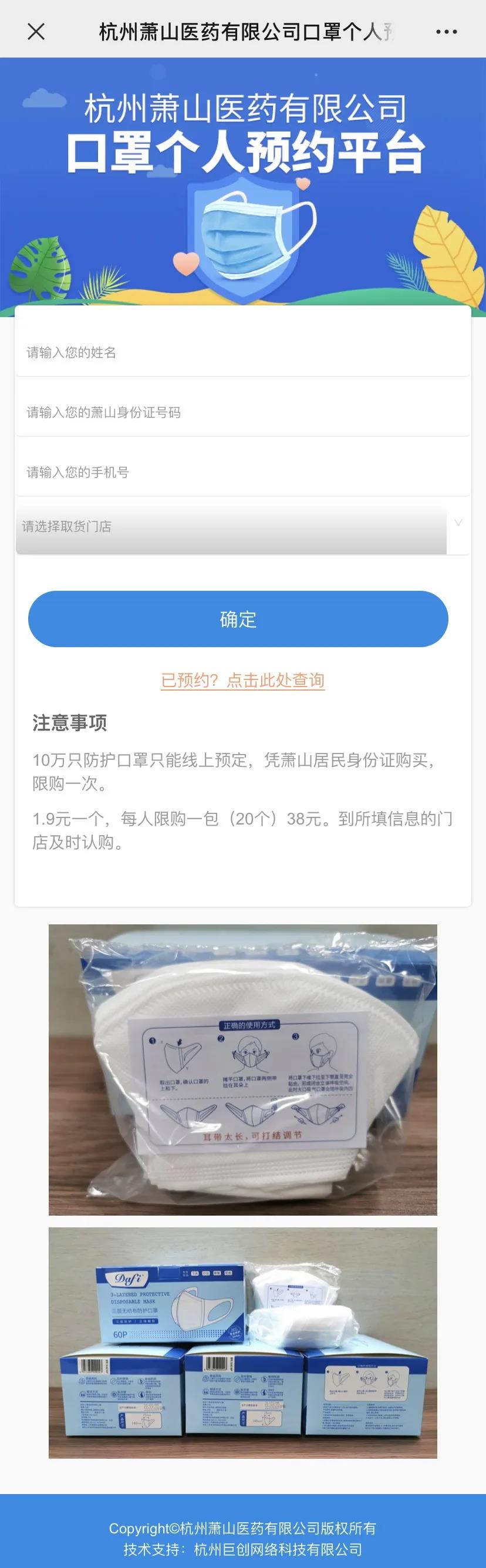 為(wèi)推動企業盡快複工達産、滿足蕭山(shān)市民多(duō)層次購買口罩的需求,在蕭山(shān)區(qū)經信局牽頭下,由我司開(kāi)發的蕭山(shān)區(qū)應急物資(口罩)申購平台企業版和(hé)個(gè)人(rén)版均于本周正式上(shàng)線運行(xíng)了,平台根據真實的産能和(hé)需求,向蕭山(shān)區(qū)範圍內(nèi)納入政府定點口罩生(shēng)産的企業采購一次性口罩,按照“平進平出”原則,合理(lǐ)有(yǒu)序的保障了蕭山(shān)區(qū)內(nèi)企業和(hé)個(gè)人(rén)複工複産,截至今天已經陸續發放口罩近百萬隻。